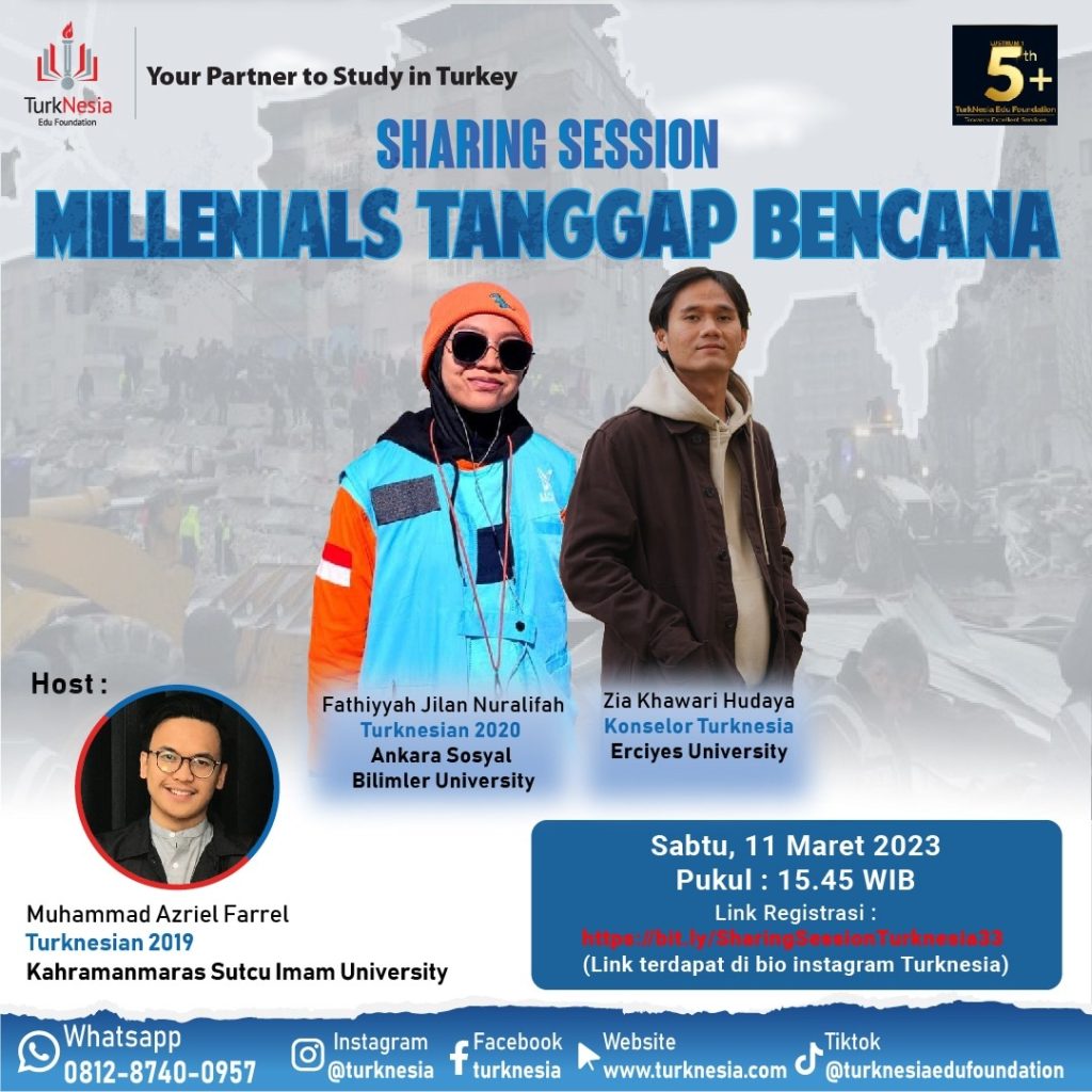 Bersyukur di antara pelajar/mahasiswa Indonesia tidak ada hal yang fatal terjadi, dan berhasil diselamatkan di lokasi yang paling rawan di pusat bencana. Aksi peduli pun memanggil para milenial yang berjiwa mulia untuk turun tangan menangani bencana. Rekan-rekan muda tangguh itu akan berbagi pengalaman dari pusat kejadian, pada saat periode tanggap darurat dan recovery bencana Turki.
