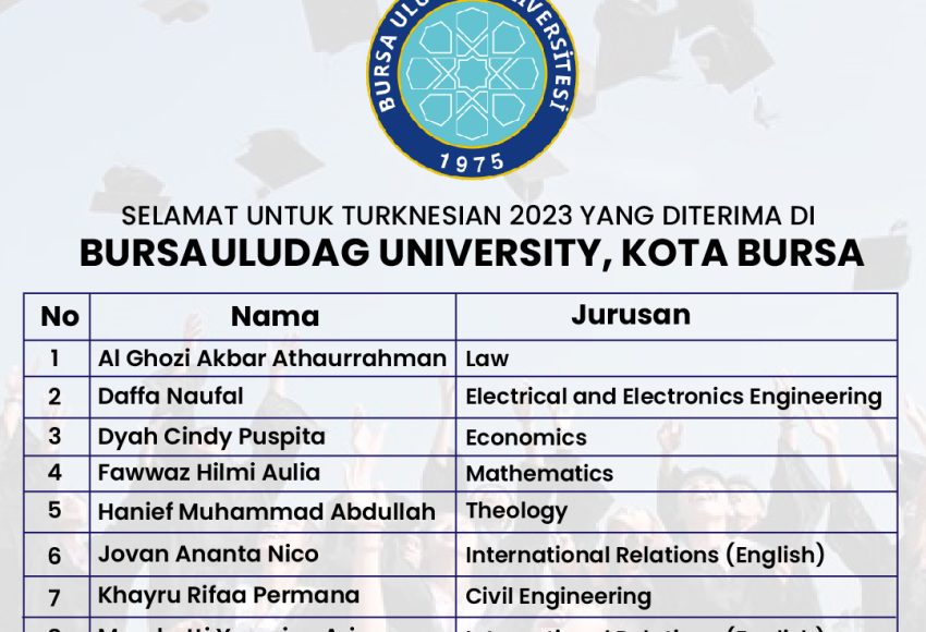 Selamat untuk Turknesian 2023 yang telah di terima di Bursa Uludag University